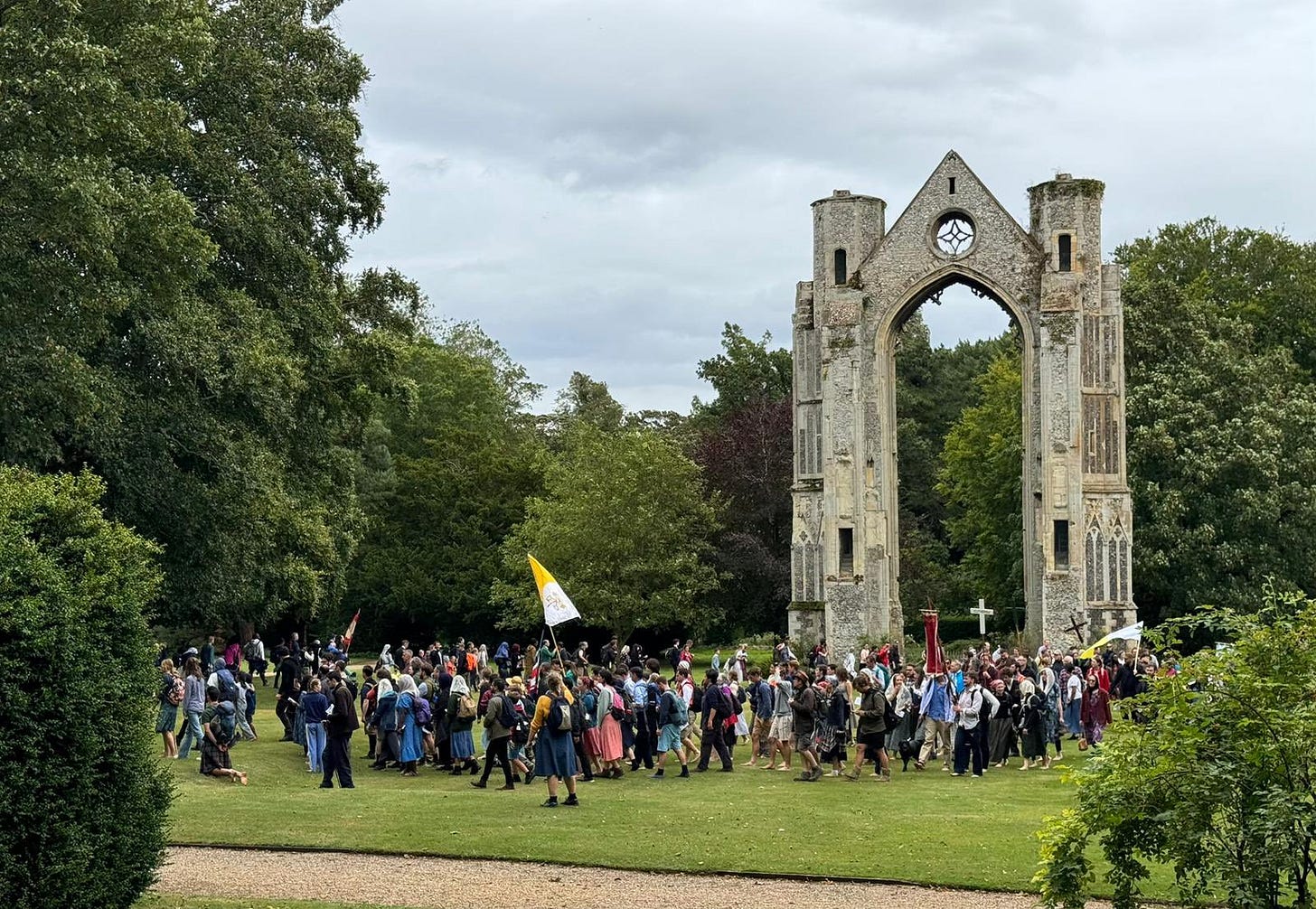 My thoughts in this post were brewing for a long time as I reflected on this land as Our Lady’s Dowry, and my experiences at two of the greatest of her shrines at Glastonbury and Walsingham. Put simply, I was struck by the dual natures of both places, and the way they both simultaneously pointed forwards and backwards in time. As time went on I realised more dualities were present - the two shrines at Walsingham, Catholic and Anglican, the two springs at Glastonbury, the red and the white. The Christian versus the pagan/New Age at Glastonbury, also reflecting the Anglican versus Catholic at Walsingham, and the two great Abbeys, both in ruins, and both containing a ‘house not built by human hands’.