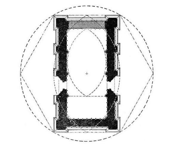 The measurements of the Holy House are important. But Richeldis’ craftsmen do not have the skill to build with them. Could the Holy House at Walsingham have embodied sacred geometry in its dimensions? We know that the Lady Chapel at Glastonbury did: